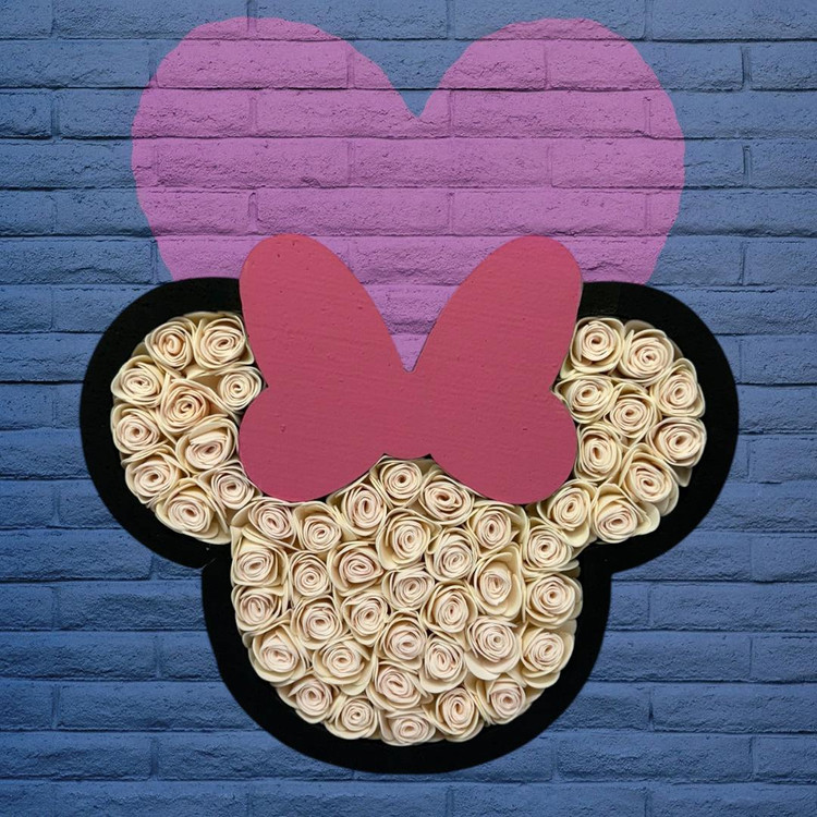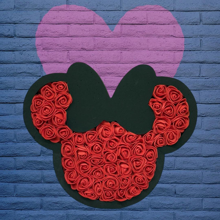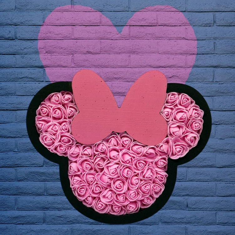 باکس هدیه گل فومی مدل میکی موس ۵۰ شاخه گل مصنوعی سایز ۲۵×۳۰ سانتی‌متر
