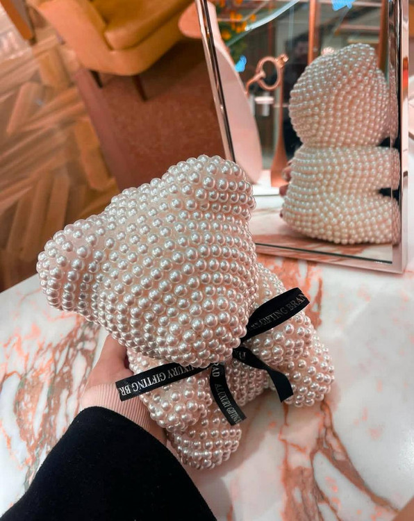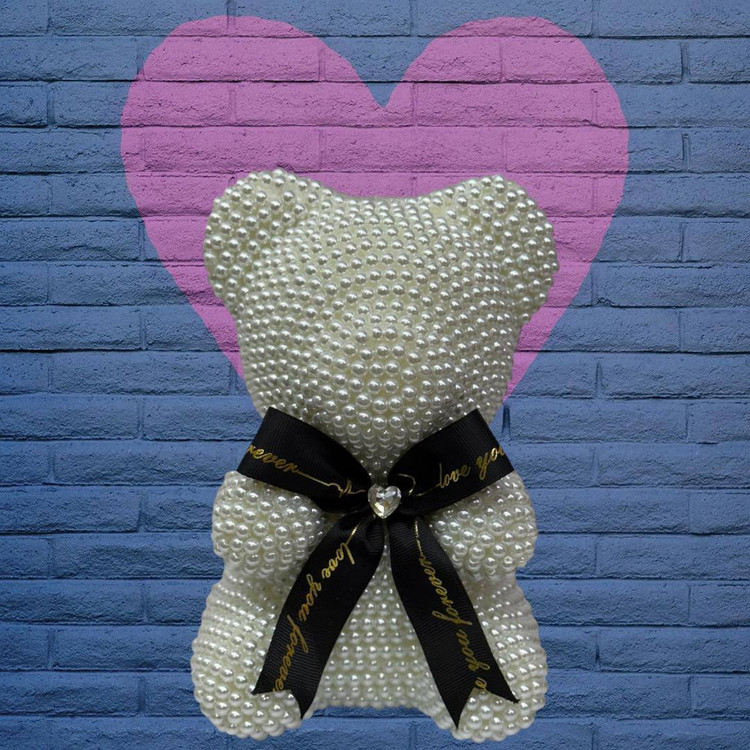 تدی مرواریدی 20 سانتی ( مینی سایز ) سفید همراه با گیفت باکس و گیفت کارت